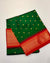 Adorn your festive look with this Bottle Green Pure Silk Heirloom Paithani, beautifully crafted in a deep bottle-green shade and elevated with a striking contrast red chatai border. The rich silk texture and traditional detailing make it an ideal choice for festive gatherings and special occasions.