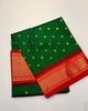Elevate your festive elegance with this Bottle Green Pure Silk Heirloom Paithani, beautifully crafted in a rich bottle-green shade and adorned with subtle tissue stripes paired with a traditional Kadiyal Border. The luxurious silk texture and classic detailing make it an ideal choice for festive gatherings and special occasions.