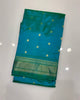 Embrace refined elegance with this Aqua Blue Check Pure Silk Paithani, beautifully woven with intricate red and golden zari detailing and highlighted by a traditional Narayan border. The subtle check pattern enhances its classic charm, while the lustrous silk drape makes it a perfect choice for festive gatherings and cultural celebrations.