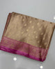 Grace meets sophistication in this chic grey crepe saree, designed for modern elegance. The fluid drape of crepe fabric enhances your silhouette, offering both comfort and style. Paired with a matching blouse, this saree is perfect for evening gatherings, formal events, and festive occasions.