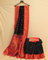 Adorn yourself with the perfect blend of tradition and modernity with this elegant black semi-silk saree from the House of Hind. The saree features a striking red Chtai border with intricate geometric and floral motifs, exuding timeless sophistication. The body is embellished with delicate, golden woven patterns, enhancing its understated charm.