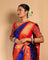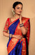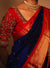This is a traditional 9 yards Paithani (Nauvari) saree, crafted in rich silk and designed to reflect authentic Maharashtrian heritage. The saree features a deep royal blue body beautifully contrasted with a bold red border, woven with classic Paithani gold zari that gives it a regal and ceremonial appeal.